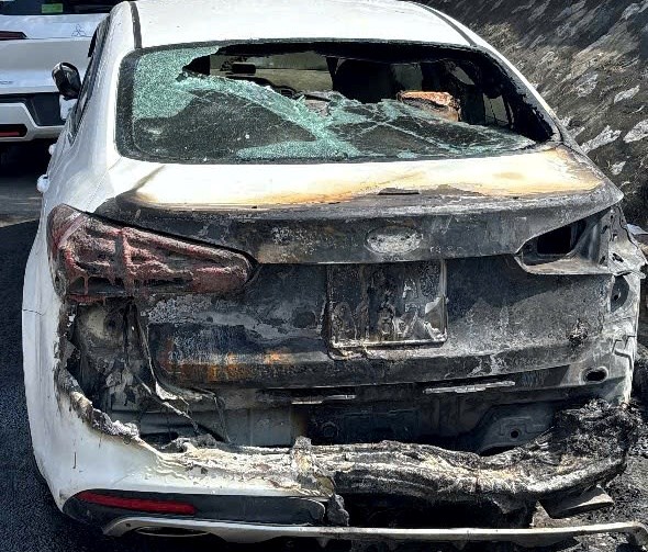 Chiếc ô tô bị đốt cháy - Ảnh: Công an TP Hải Phòng