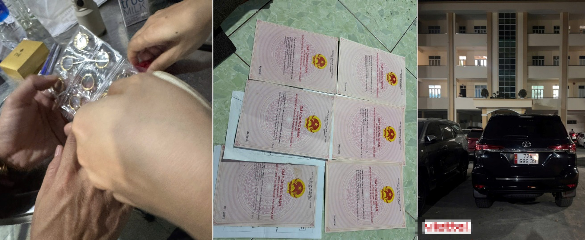 Tang vật thu giữ gồm: 13 nhẫn kim loại màu vàng (loại 1 chỉ/nhẫn), 1 lắc tay kim loại màu trắng, 1 đồng hồ Hublot, hơn 700 triệu đồng trong tài khoản ngân hàng, 292.722 USDT, 10 giấy chứng nhận quyền sử dụng đất, 1 máy chủ chứa dữ liệu website, 1 máy vi tính để bàn, 1 iPad, 15 điện thoại di động, 1 ô tô hiệu Ford Fortuner, 1 mô tô Kawasaki… Tổng giá trị tài sản thu giữ ước tính trên 50 tỉ đồng.
